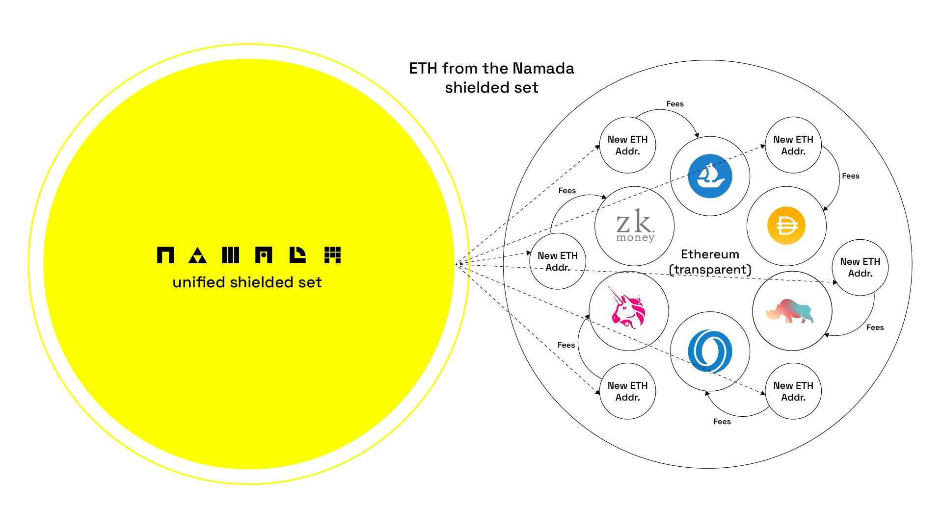 即使 ETH 是从 Namada 屏蔽集中播种的,它们也应该被发送到新地址并使用不同的新地址与每个 dApp 进行交互。